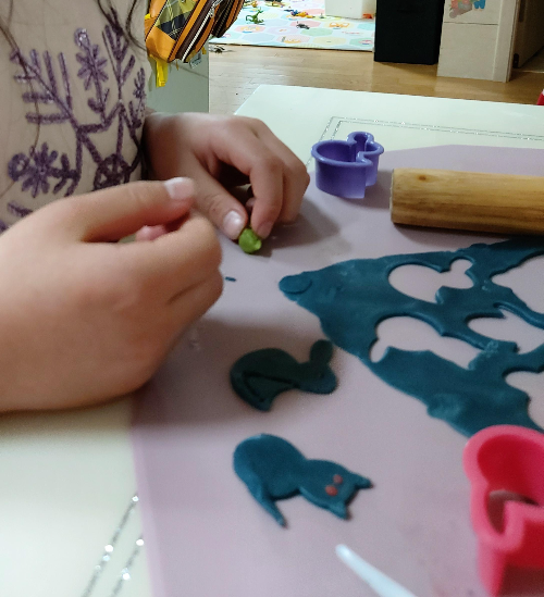 아이들이 위에 데코를 해놓으면 밀대로 살짝 밀어준다.(그래야 접착이 되어 안떨어지고 잘 붙어있다.)