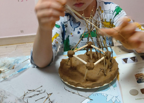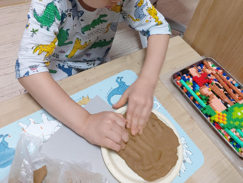 단순하고 어른의 손이 많이 안가는데 무척이나 좋은 놀이였다. 부드럽고 내 마음대로 주무를수 있는 점토와 자연물인 나뭇가지를 만지고 있으면 마음이 차분해지고 몰입이 엄청나다.